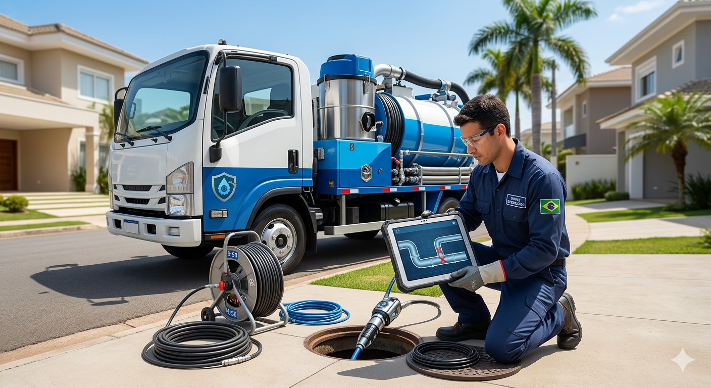Contratar uma empresa desentupidora qualificada garante que o problema seja resolvido na raiz, sem gambiarras. Certifique-se de que a empresa possui CNPJ ativo, alvará da vigilância sanitária e oferece garantia formal do serviço.