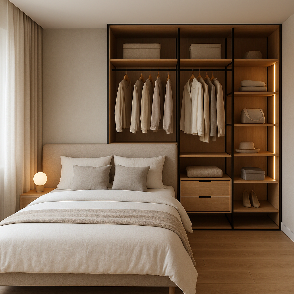 🧺 Vantagens do guarda-roupa aberto ou modular